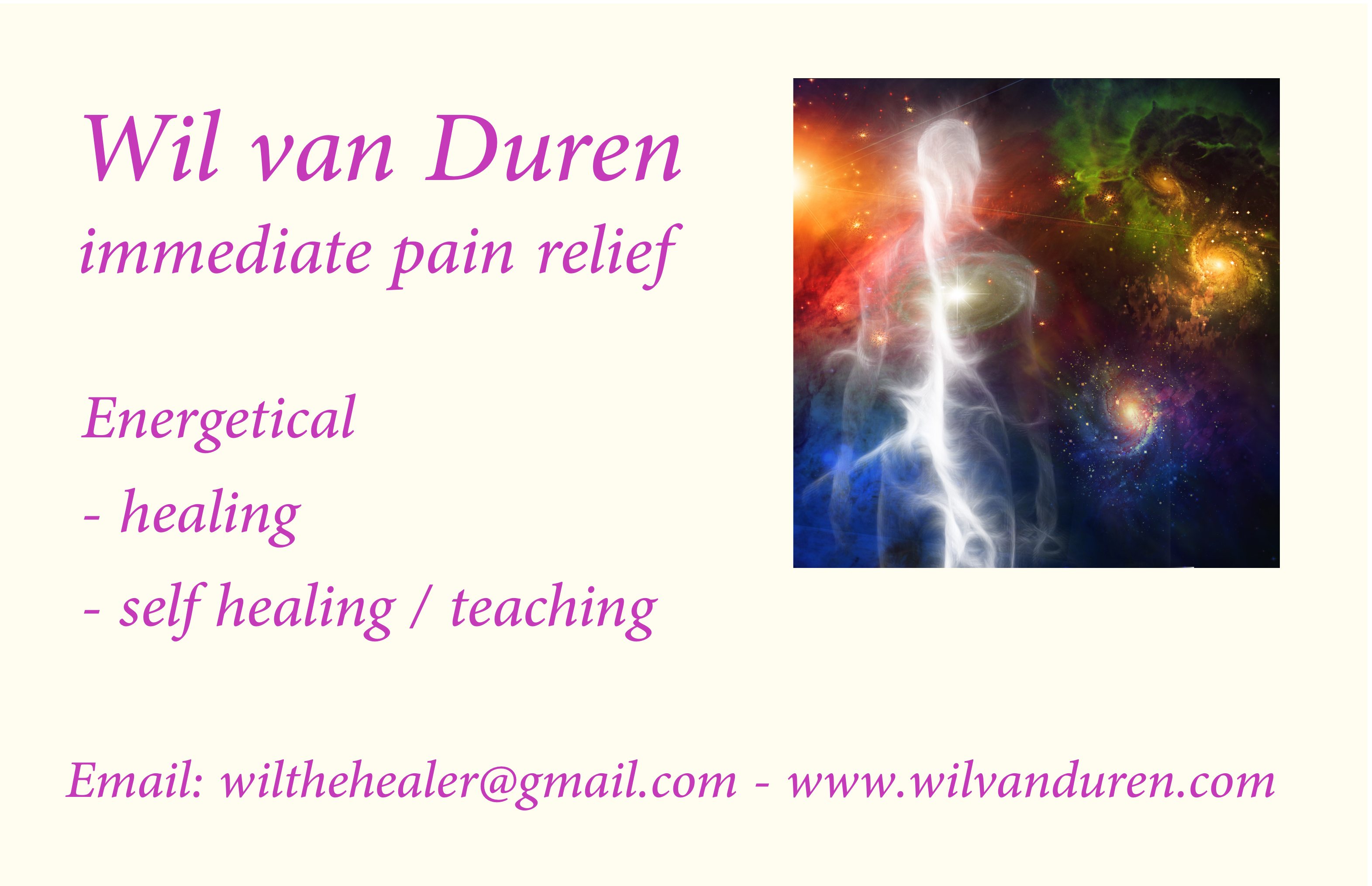 Without presuming to take the place of traditional medicine, Wil's contribution, or that of the Universe through him, is to humbly bring relief and refreshment to those who have tried various approaches without having solved the problem, as well as to those who have small momentary ailments or post-operative pain; it is an opportunity for those who know that energy is the source that governs our inner and therefore physical wellbeing, to intervene on themselves immediately, quickly and effectively.